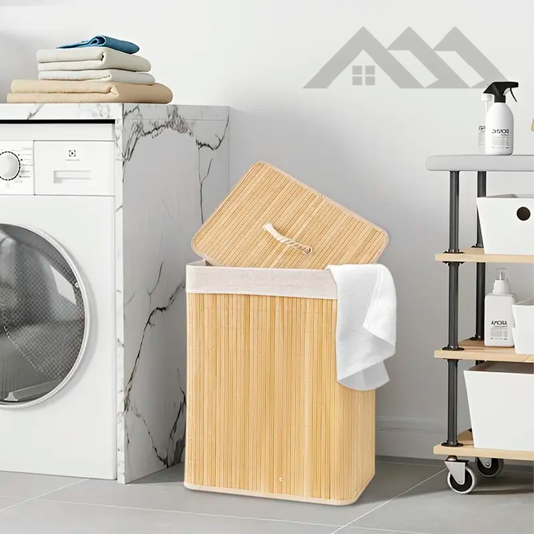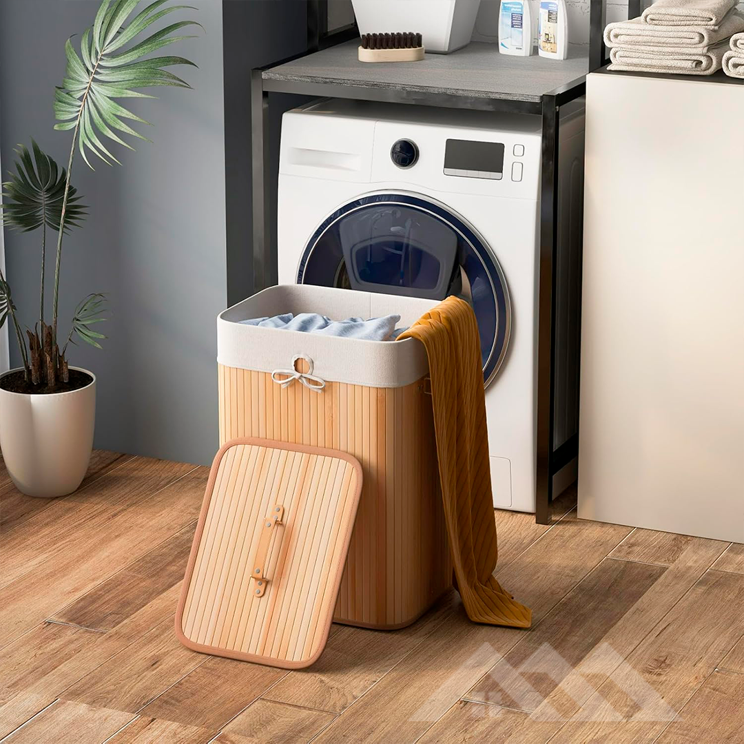 Mantén tu ropa y accesorios en un solo lugar con estilo natural. El cesto de bambú organiza cada rincon y aporta un toque elegante y ecofriendly.